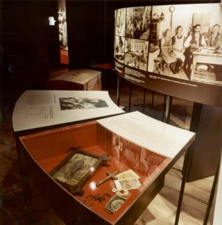 Auf segmentförmigen Tischen in verschiedenen Höhen und einer zylindrisch umlaufenden Fotodokumentation wird der Jahresablauf im Leben eines Dienstboten mit Festen und alltäglicher Arbeit anschaulich. Die Ausweg- losigkeit eines solchen Lebens wird durch einen geschlossenen Kreislauf symbolisiert. Knecht- schaft war das Los der Kinder von Keuschlern und Armen, aber auch der Bauernkinder, die nicht erstgeboren waren.