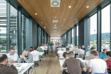 Materialauswahl und Möblierung für das Foyer, Workshop/Vortragssaal, Ruheräume, Besprechungsräume in den „Wafern“ und die Teeküche in der erweiterten Konferenzzone des Erdgeschosses sowie den neuerrichteten Speisesaal im 1. OG.
